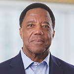 Michelle Johnson Tidjani, senior executive vice president and chief administrative officer at CommonSpirit Health, moderates a discussion between Wright Lassiter III, center, the system's CEO, and his predecessor, Lloyd H. Dean, who retired in 2022. The discussion was part of the Humankindness & Health Justice Summit, a virtual event in September convened by the Lloyd H. Dean Institute for Humankindness & Health Justice.