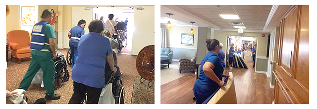 Reich says residents remained upbeat and cheerful throughout the relocation. All returned safely to a fully operational — and undamaged — facility Sept. 12. Residents wrote a thank you letter to staff for keeping them safe. (Read that letter here.)