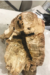 A post on the Avera Heart Hospital's Facebook account showed a chunk of wood that landed in the hospital's lobby. The wood appeared to have an embedded impression of a cross.