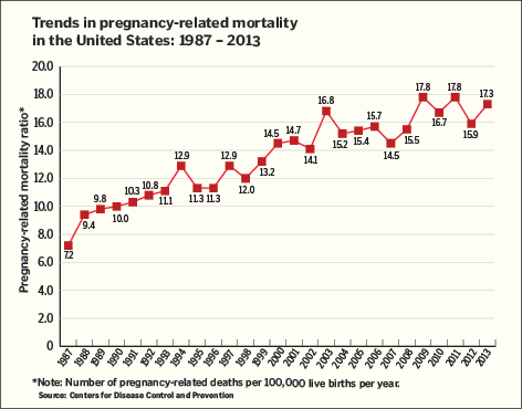 More women die of pregnancy-related complications in the U.S. than in any other developed nation, and the U.S. now ranks 64th in the world for maternal mortality.
