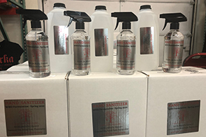 "It sounded like it would be a fun way to help people in need of a necessary product," said Glaser, one of three team members who filled bottles while others boxed the finished product. Though several other colleagues volunteered, Schroer limited the size of the group "to respect social distancing." After running a successful test of 50 bottles the first night, Schroer said, "We went crazy and made about 500 over Saturday and Sunday."