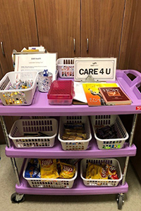 "Lavender carts" filled with tools for staff support are used in many SSM Health locations by leaders, behavioral health professionals and spiritual care services/mission leaders reaching out to frontline staff. The carts hold snacks, balloons, thank-you cards and other expressions of gratitude, including letters from staff or community members. Schmidt said one SSM Health ministry set up a spiritual support hotline for employees during the pandemic. There also is a support group for chaplains, who can use it to talk about the stress of providing support to hospitalized patients and staff.