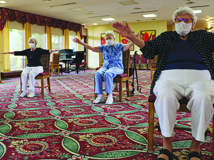 In addition to gardening, she takes part in the weekly chair yoga sessions and in morning prayer gatherings with other sisters in the solarium of the high-rise.