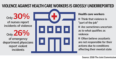According to the Occupational Safety and Health Administration, 75% of nearly 25,000 workplace assaults reported annually occurred in health care and social service settings.