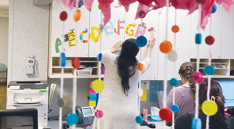 The décor is part of a back-to-school motif dreamed up by Spanish interpreter Brenda Serna to add whimsy to the pediatric space at SSM Health Dean Medical Group's clinic on the west side of Madison, Wisconsin.