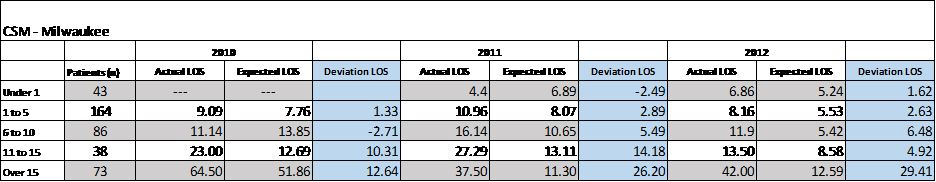 Conversely, when ethics consultation is requested well after the patient's admission date — eleven to 15 days or over 15 days — LOSexp versus LOSobs deviations are significantly less favorable. For example, in 2010-2012, when ethics consultation was requested more than 15 days after the patient's admit date, the deviation LOS was 12.64, 26.20 and 29.41 respectively (see Table 1). These data suggest that when ethics consultation is appropriately utilized more than ten days after the patient has been admitted the patient's observed LOS will vary greatly from the patient's risk-adjusted expected LOS.