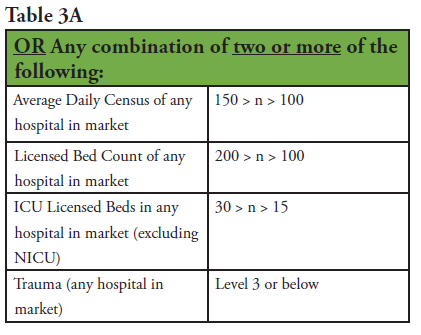 Finally, Table 3 adjusts to account for a shift from "Strongly Recommended" to "Recommended" by further decreasing volume metrics associated with clinical ethics consultation, while Table 3A does so by both removing criteria found in Tables 1A and 2A and decreasing the size of the facility or number and acuity of patients cared for.