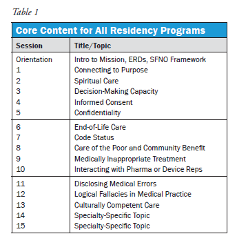 The goals of the curriculum are to: provide the information related to mission and ethics necessary to practice in CHRISTUS facilities; help residents build the skills they need to identify, analyze, resolve ethical issues in their patients' care;1 and convey this material in a manner relevant to their clinical practice.