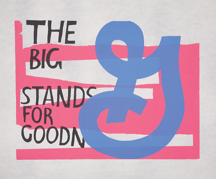 One of Pop's lesser known artists was Sr. Corita Kent, IHM, known mostly as Corita. Her sense of the subversive was to use the images and words of American consumerism for purposes of social and spiritual activism. "For Eleanor" is a serigraph by Corita in which she took the General Mills logo and cut its tag line to "The Big G stands for Goodn." No doubt General Mills wanted that G associated with the wholesome goodness of Cheerios and Wheaties, but Corita's abbreviation conjures up ideas about goodness, Godliness and the common good. The theologian Harvey Cox identified Corita's genius in uplifting the commonplace to new forms of goodness: "Like a priest, a shaman, a magician, she could pass her hands over the commonest of the everyday, the superficial, the oh-so-ordinary, and make it a vehicle of the luminous, the only, and the hope filled."