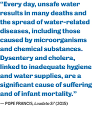 The Vatican initiative is well-aligned with Catholic teaching and global need. "Catholics work hard for human rights," Sr. Orea reminds us from her facility in Chiapas. "The right to health is one of the most inalienable rights of the human being. Whoever has water, has life."