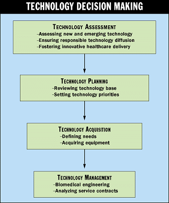 Technology assessment, planning, acquisition, and management are the key elements in effective technology decision making. By properly integrating each in a coherent, well-managed approach (see "Technology Decision Making" below), hospital managers can ensure their decisions support their facility's overall mission and goals.
