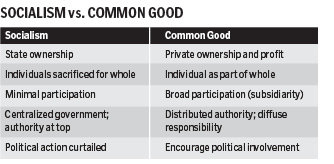 The chart, right, developed by Fr. Charlie Bouchard, OP, STD, CHA's senior director of theology and sponsorship, helps show the differences between socialism and the common good.