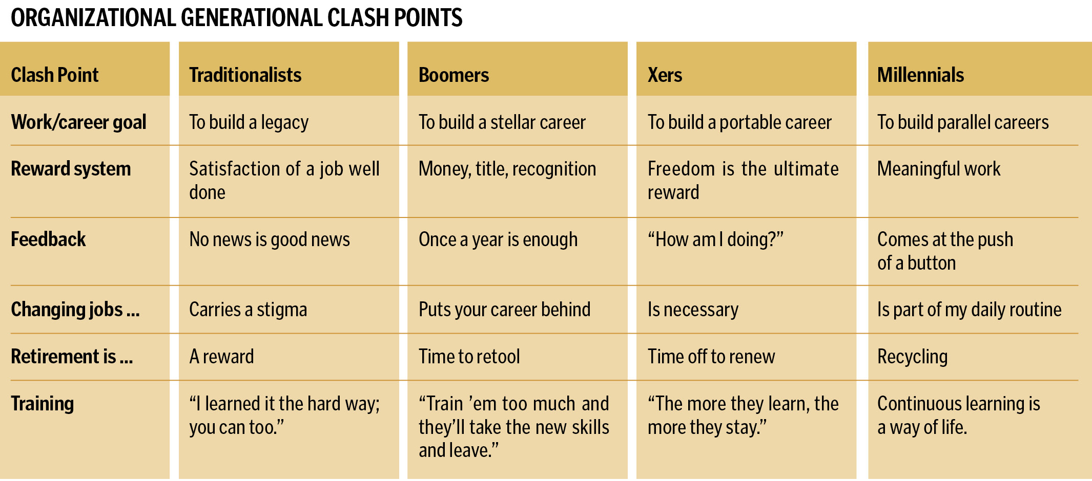 Some health care leaders discount reports of tensions between the generations represented on their work force. If they think about it at all, they view it as the normal transition of newer, younger employees acclimating to the culture of the workplace. They rationalize that young employees will learn what is expected of them and that they will adjust accordingly in order to be successful.