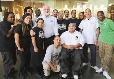 Fr. Gregory Boyle, SJ, and some of his associates at Homeboy Industries.