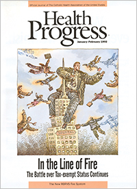 Health Progress continued to follow the issues. The theme of the January/February 1992 issue was, "In the Line of Fire, The Battle over Tax-exempt Status Continues." In that issue, David Seay from the United Hospital Fund of New York put the IRS community benefit standard in a historic context: