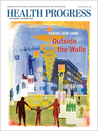 In 2015, Health Progress focused on community partnerships and in 2018 "Taking Our Care Outside the Walls." This issue included an article by Dr. Rod Hochman, president of Renton, Wash.-based Providence St. Joseph Health and Sr. Donna Markham, OP, president and chief executive officer of Catholic Charities USA, on how Catholic health care and charities agencies can work together to address needs of low-income people. They said, "For people who are poor and vulnerable, attending to the social determinants of health is foundational to their overall health. There are no better resources to address those social determinants of health than these two faith-driven organizations working in tandem."