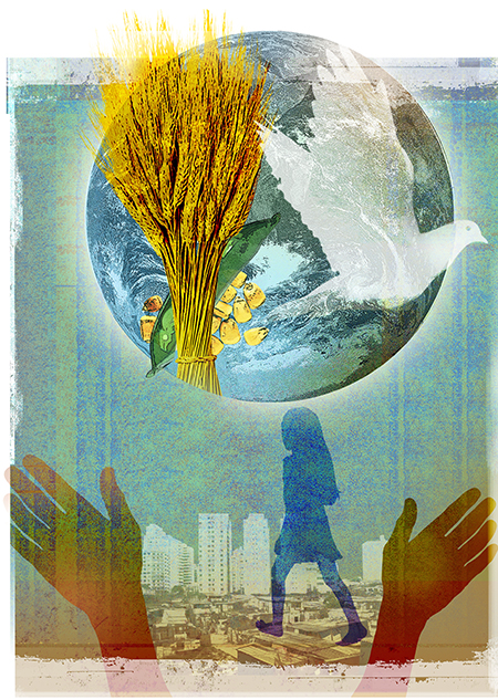 While I often have repeated that story to colleagues and noted how "sweet" the sisters were to ask me to conquer world hunger and world peace, I recognize that a profound image was embedded in their question to me. From those two global priorities flow all of our actions and responsibilities.