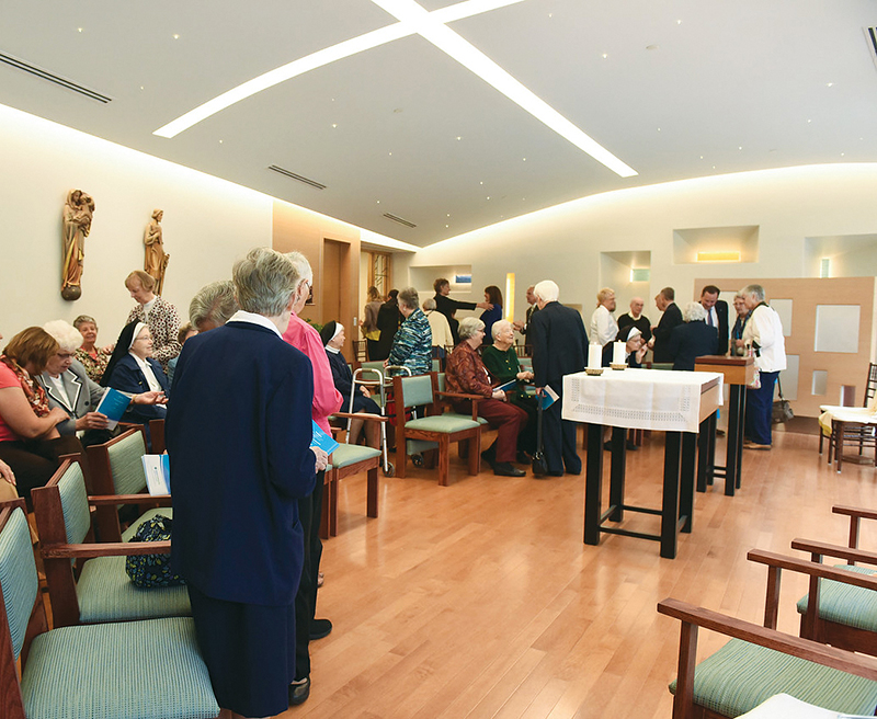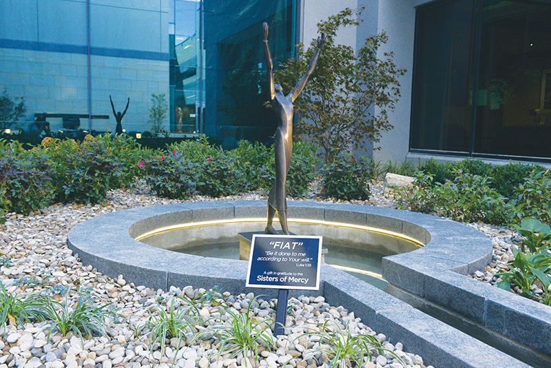 Sr. Mary Lou Averbeck, a Sister of Mercy and mission liaison to the administration, guided the design team in understanding the significant components of our history and connection to our roots. In 2014, Sr. Averbeck had an opportunity to visit Ireland and the House of Mercy started by Catherine McAuley in 1827. While there, she toured the Mercy International Centre, located on the House of Mercy campus in downtown Dublin. In addition to crossing that item off her bucket list, she experienced, first-hand, things she had only seen in pictures and heard in stories. She was able to place her hand in Catherine's, as the bronze sculpture outside the House of Mercy invites. She connected to Catherine's spirit, as the sculpture symbolically assures each person that all are welcome there.