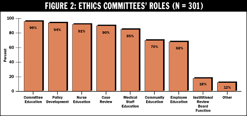 Traditionally the three functions of institutional ethics committees are education, policy development, and case review. The survey found that current committees are still committed to these traditional roles, but the education is directed to more diverse audiences than in the past (see Figure 2).