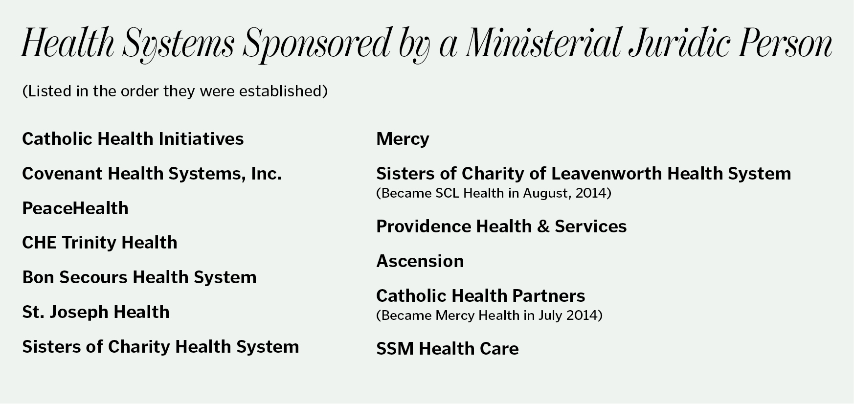 The years 1991 through 2013 were notable for changes in system sponsorship from religious institutes to ministerial juridic persons, canonical structures that allow members of the laity to assume sponsorship roles. The first was Catholic Health Care Federation, predecessor to Catholic Health Initiatives. By 2013, 12 more had formed and secured Vatican approval.