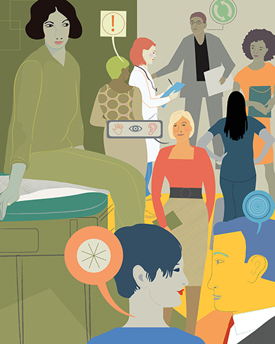 At 9 a.m. on a Tuesday, when a patient sat down in an exam room at CHI Health Creighton University Medical Center–University Campus in Omaha, Nebraska, her care already was in motion. On the other side of the exam room door, an interprofessional team of care providers, along with students from various health professions, already had huddled to discuss the day. It's a quick and productive discussion, with input from faculty physicians, residents, nurses, physical and occupational therapists, dietitians, behavioral health specialists and learners. After talking about safety issues and recognizing individual successes, smaller teams gather to discuss the patients they will see that morning.