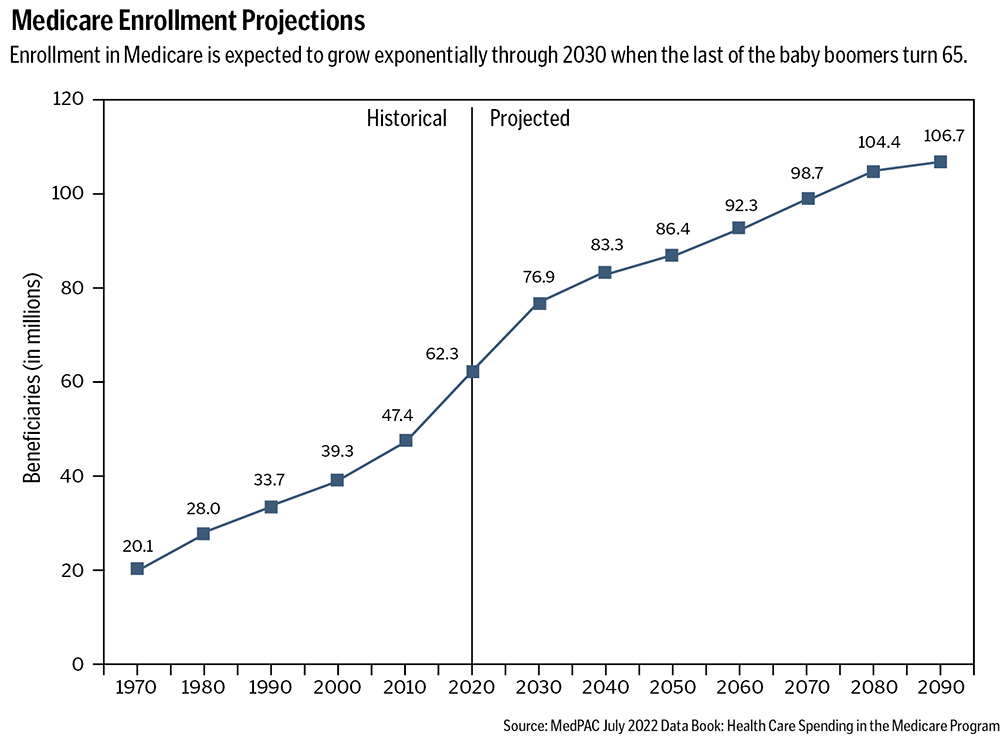 - More than 10,000 people are becoming eligible for Medicare every day, and by 2030, every baby boomer will be 65 or older.1, 2
