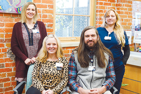 The Providence Community Clinic team, left to right, Angela Chapman, PCC, Wendy Smith, ARNP, Robert Lippman, DBH, MSW, and Sarah Isakson, CMA. Volunteers also assist at the clinic.