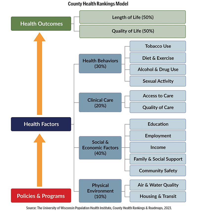 - "County Health Rankings Model," County Health Rankings & Roadmaps, https://www.countyhealthrankings.org/explore-health-rankings/county-health-rankings-model.