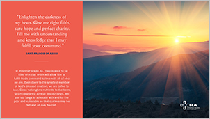 Please order ample cards so that you can spread them widely in your organization by offering at welcome desks, in chapels and staff break rooms, etc. For prayers that can be downloaded and easily printed, go to https://www.chausa.org/environment/feast-of-st-francis.