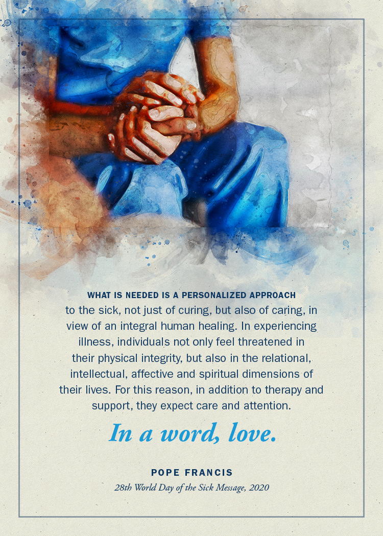 Feb. 11 is World Day of the Sick, an observation introduced by Pope John Paul II as a way for believers to offer prayers for those suffering from illnesses. The day coincides with the commemoration of Our Lady of Lourdes. It is an important opportunity for those who serve in Catholic health ministry to reflect on caring for those who are sick and those who provide care to them. CHA is pleased to offer a series of prayer cards to commemorate World Day of the Sick.