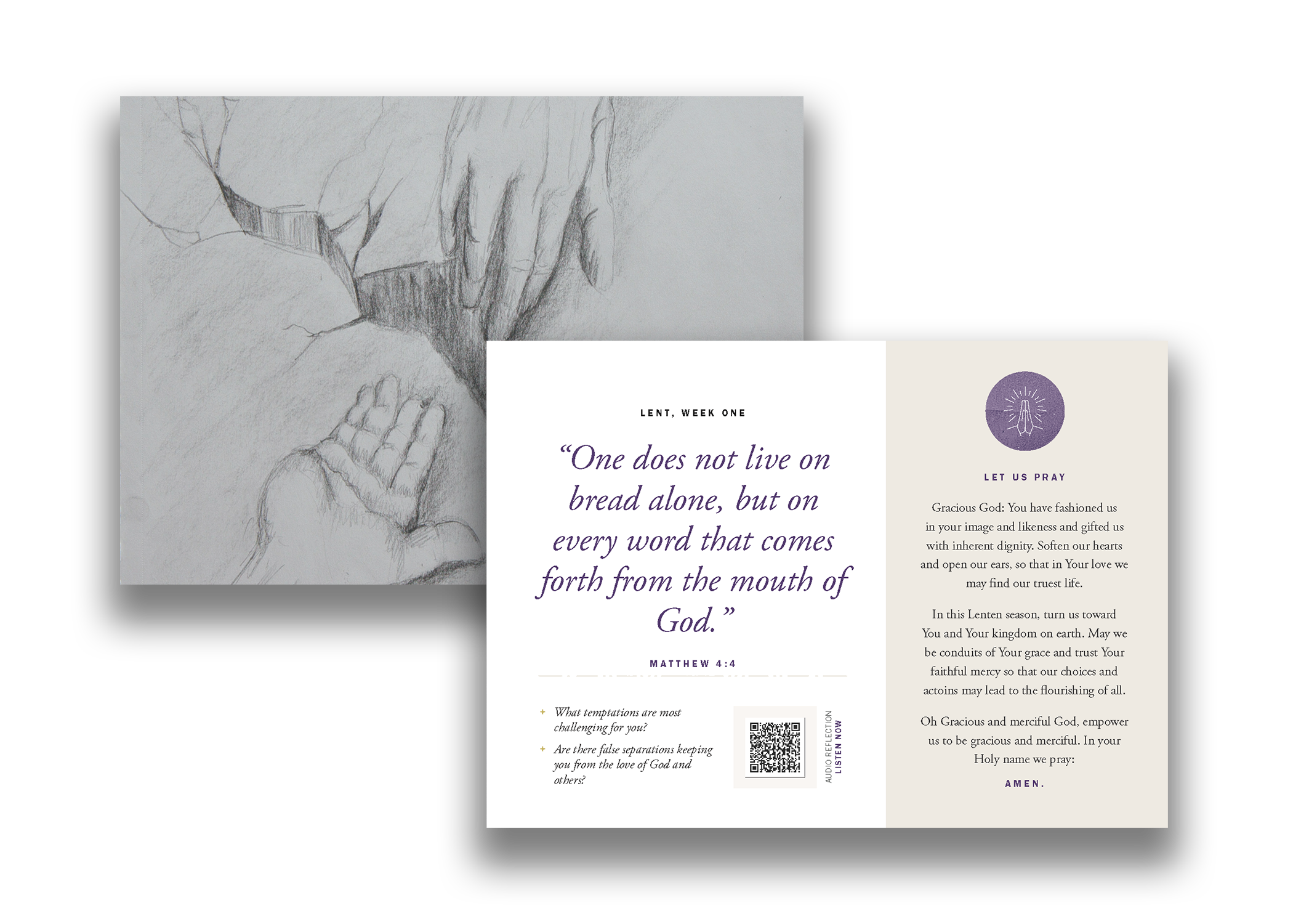 In these most important seasons of Lent and Easter, journey with Jesus, the disciples, and one another as we build God's Kingdom on earth. Bolstered by the support of prayer and community, may our actions lead to the flourishing of all.