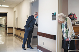 Reinhardt notes that at Benedictine residents' deep longing for in-person contact with their loved ones and staff's desire to diminish the suffering caused by loneliness and isolation is balanced by caution. She says some staff feel "like momma bears. Because we've held our residents so close and worked so hard for a year now, while we want to relax, we still want to ensure our elders are safe."