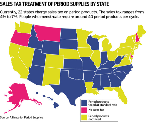 Gaines say she knows the needle is moving on awareness of period poverty based on the growing number of inquiries that the alliance gets from people who want to help with or to start product giveaway programs and because of the uptick in the passage of related laws. The alliance keeps track of those measures, such as the ending of the so-called "tampon taxes" in Virginia this summer. Only 22 states continue to have sales taxes on menstrual hygiene products, the alliance says.