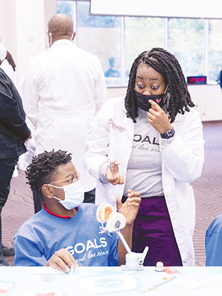 A boy learns about oral health from a dental student at an event at Meharry Medical College in Nashville, Tennessee. The historically Black academic health sciences college is one of a trio of initial recipients of grants from the new Ascension Foundation. All three grant recipients are training upcoming generations to tackle health disparities.
