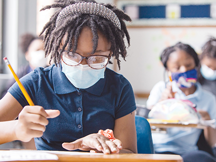 A Marian Middle School student completes schoolwork. The private Catholic girls' school in St. Louis was among the recipients of funds from the Ascension Foundation.
