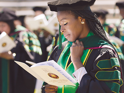 A Meharry Medical College graduate attends her hooding and degree conferral ceremony. The historically Black medical, dental and science institute in Nashville, Tennessee, was among the recipients of funds from the Ascension Foundation.