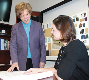 Sr. Donna Markham, OP, left, president of Catholic Health Partners' Behavioral Health Institute, confers with Carol Parke, the institute's chief of nursing services and operations.