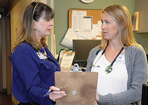 Dawn Diaz, the advocate at Mount Carmel West, tries to do this by functioning like a case worker. She talks in-depth with about 15 to 30 patients a day about the many different concerns they're facing. Many lack housing, transportation, money, proper identification for accessing services.