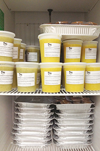 Culinary student volunteers from the Bergen County, N.J., Academies' SkillsUSA club in Hackensack, N.J., prepare the recipes for the Healing Meals at a commercial kitchen in Hawthorne, N.J., called No Fuss Lunch. The volunteer cooks use fresh, natural, organic ingredients donated by three local Whole Foods Market stores. HealthBarn's foundation oversees the operation and provides additional ingredients and packaging. The freezer where the meals are stored was donated by a Paterson, N.J., store, Reno's Appliance.