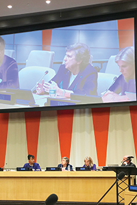 w181001_EmpoweringWomen-1-aAt the annual Ideagen UN Empowering Women and Girls 2030 summit at United Nations headquarters in New York City last month — a meeting aimed at charting and advancing gender equality throughout the world — a panel put together by Providence St. Joseph Health spoke about the importance of having more women enter male-dominated medical specialties. Panelists suggested ways in which a focus on improving social determinants of health can improve the quality of life for women and increase their economic opportunities. This year's meeting focused on women-owned businesses and entrepreneurship. Sr. Carol Keehan, DC, CHA's president and chief executive officer, told the audience how women religious relied on their faith and tenacity to build Catholic health care into a worldwide ministry. She also spoke about how the ministry is helping human trafficking victims. Panelists included, from left, Dr. Rhonda Medows, executive vice president of population health at Providence St. Joseph; Sr. Carol; Dr. Amy Compton-Phillips, executive vice president and chief clinical officer at Providence St. Joseph; and Dr. Rod Hochman, president and chief executive officer of Providence St. Joseph.