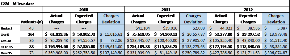 Conversely, when ethics consultation is delayed even for a brief time after the patient's admission date, Chargesexp versus Chargesobs deviations are significantly less favorable. The most striking example occurred in 2010-2012. When ethics consultation was requested more than 15 days after the patient's admit date, the charges deviation was $107,149.50, $250,789.20 and $306,074.87 respectively (see Table 2). This suggests that when ethics consultation is appropriately utilized too far after admission, the patient's observed charges will likely vary greatly from the patient's risk-adjusted expected charges.