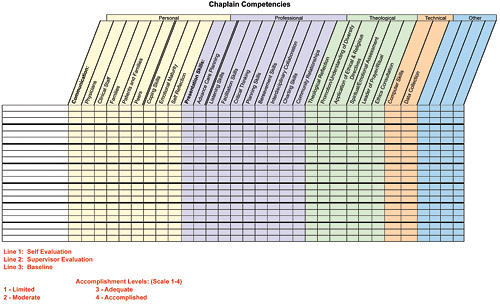 The committee agreed that the competencies, although extremely helpful, should be presented in a more user-friendly format that could be used as a management tool. As a result, a grid was developed to be used by pastoral care directors for performance appraisal; development of individual and department educational goals; and performance improvement. In the end, the competencies served as the basis for redesigning position descriptions in a way that made the recruitment of future chaplains more intentional and better defined.