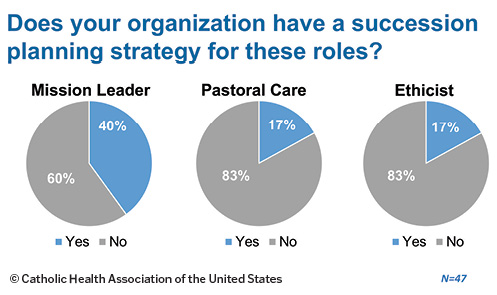 Members report to CHA that they are having an increasingly challenging time finding qualified candidates to fill these positions. Often positions are left vacant for more than a year, and because the talent pool is small, many times positions are filled from other member organizations. In addition, CHA data show that over the last two years, more than 200 mission leaders retired and that in the next three years, another 200 will retire. Similar trends are found among ethicists and chaplains. This has led the CHA Board of Trustees to make talent development and succession planning in mission, pastoral care and ethics roles a key strategic initiative over the next three years.