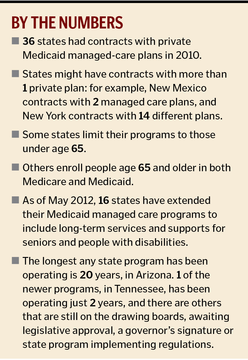 - Kathleen Gifford et al., "A Profile of Medicaid Managed Care Programs in 2010: Findings from a 50-State Survey," Kaiser Family Foundation, September 2011.